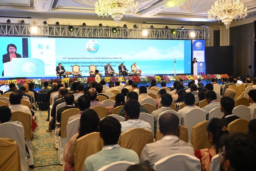 ICAR-Central Institute of Brackishwater Aquaculture (ICAR-CIBA) in association with the National Fisheries Development Board (NFDB) and the Fish Health Section of Asian Fisheries Society (AFS) with the support of national fisheries research institutions and development agencies organised the 12th International Symposium on “Diseases in Asian Aquaculture (DAA’12)” with a theme “Transformative Innovations Shaping the Future of Aquatic Animal Health Management” during 23-27, September 2025, at the Hotel Leela Palace, MRC Nagar, Chennai.