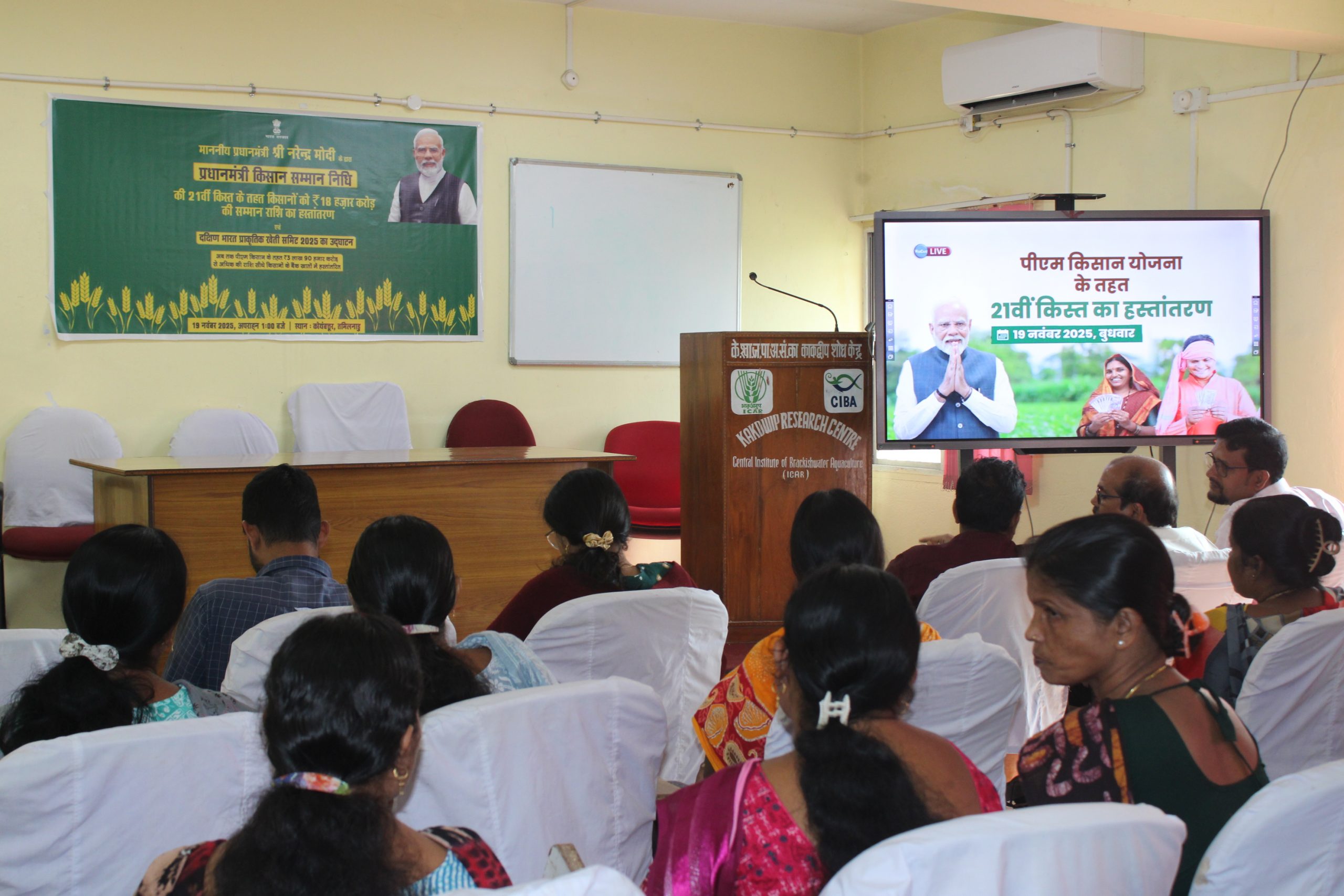 Honourable Prime Minister of India Shri Narendra Modi inaugurated the South India Natural Farming Summit 2025 at CODISSA Coimbatore in Tamil Nadu on 19th November 2025. As directed by the ICAR the inaugural session of this summit was live telecasted at CIBA headquarters and its field, regional centres. About 193 participants including aquaculture farmers and fishers from Kovalam and Pattipulam villages in Chengalpattu district, Scientists, Technical Officers, Research Scholars and Students participated in the event.