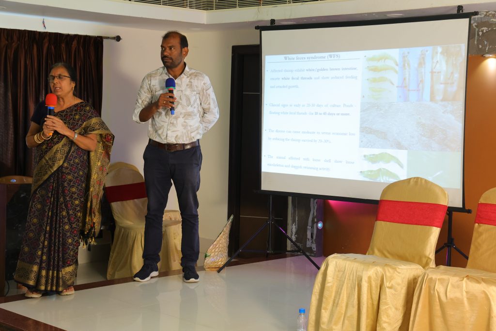 Dr Sankar Rao, Director, Coastal Aquaculture Authority (CAA), delivered a talk on the latest updates on rules and regulations of CAA for sustainable shrimp aquaculture.
