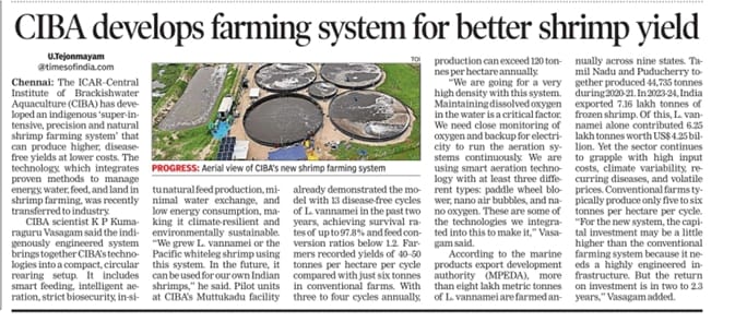 Super Intensive Shrimp Farming News, Times of India, 29th Sep 2025