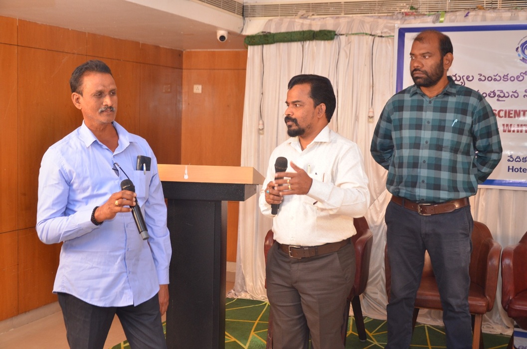 Shri.Krishna Kishore, Assistant Director of Fisheries, Chirala explained the programmes implemented by the Department of Fisheries, Andhra Pradesh to sort out the issues faced by the shrimp farmers in the State.