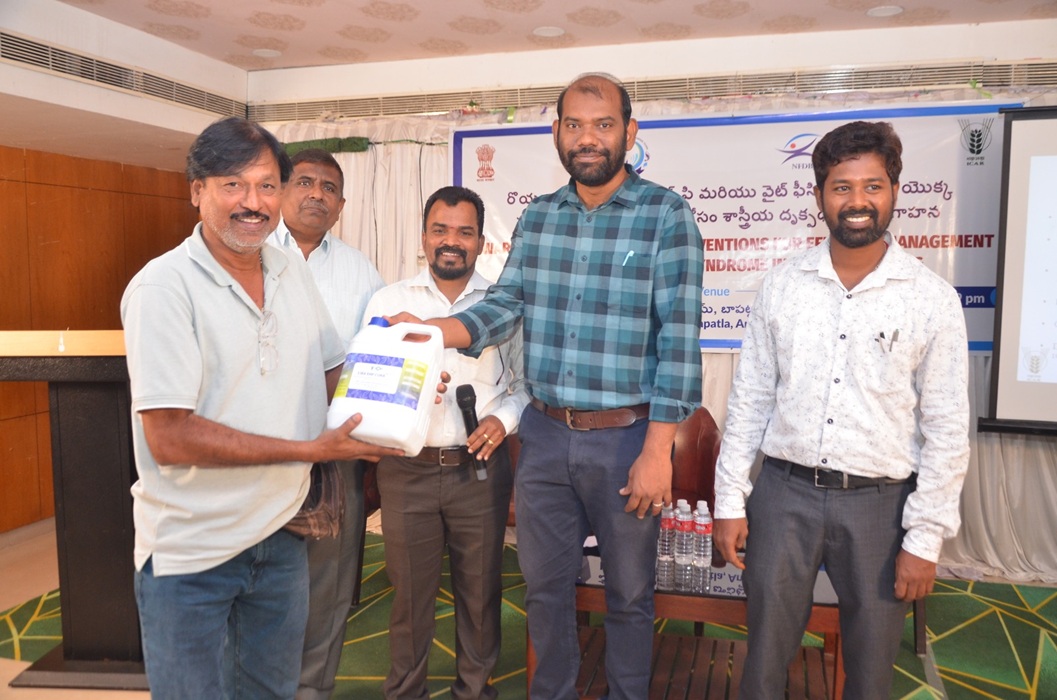 Dr.T.Sathish Kumar, Senior Scientist and the Principal Investigator of the Microsporodiasis disease management project and the sensitization programme sponsored by the NFDB. In his exhaustive presentation he gave detailed the EHP and white fecal disease, the etiology of the disease, symptoms, diagnostics and management of the disease through application of EHP-Cura-I product developed and popularized by ICAR-CIBA. He explained about the mode of application, doses, frequency of application and validations done so far.