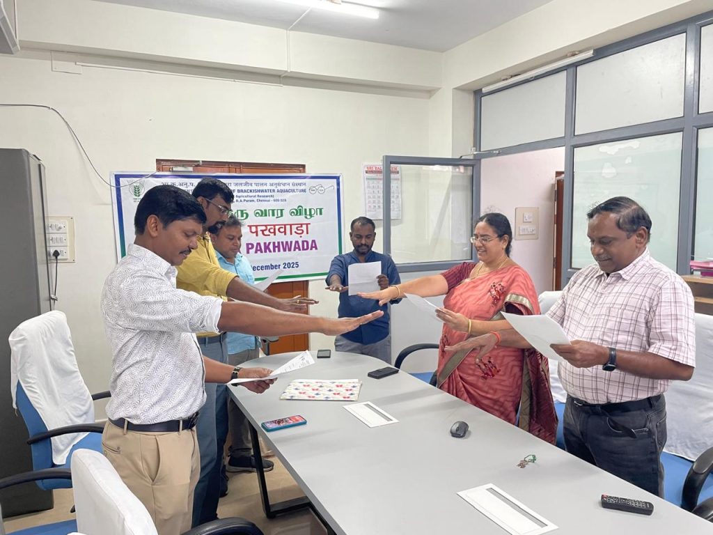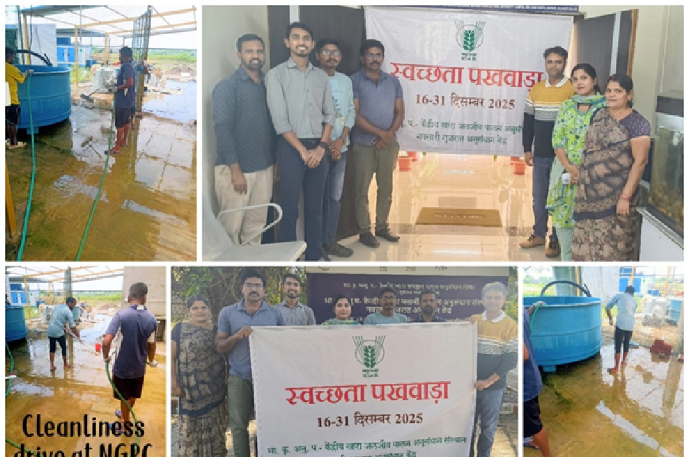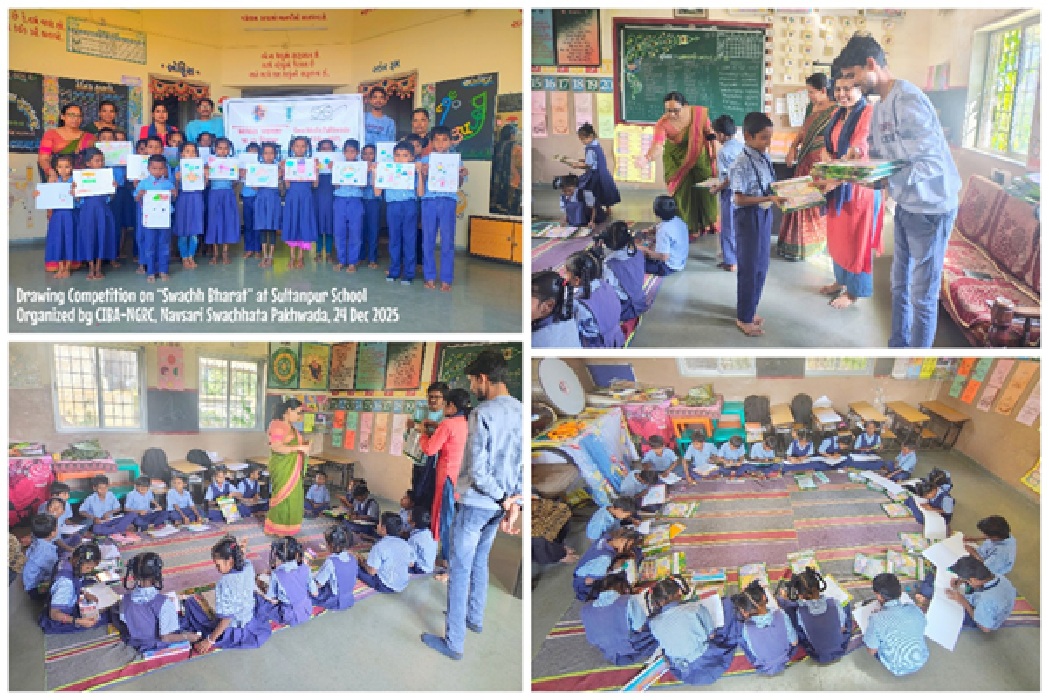 To recognize the importance of agriculture and farmers in nation-building, Kisan Diwas (Farmers’ Day) was celebrated, creating awareness about the role of farming communities and their contribution to our lives on 23rd December, 2025. For community involvement and to encourage creative expression, a drawing competition was organized on 24.12.2025 at NGRC, Navsari, Gujarat with themes centered on cleanliness and environmental protection, engaging participants of all ages. In continuation of the sustainability theme, a seminar on the “recycling of wastewater” was held on 26.12.2025 to educate participants about technologies and practices for water conservation and reuse. The Pakhwada concluded with an impactful sea beach cleaning programme at Muttu Kadu Experimental station of CIBA on 28.12.2025 where volunteers gathered to remove litter and raise awareness about marine pollution, reinforcing the message of protecting natural resources. Overall, the Swachhta Pakhwada activities successfully fostered a spirit of cleanliness, environmental responsibility, and community participation across the office and beyond.