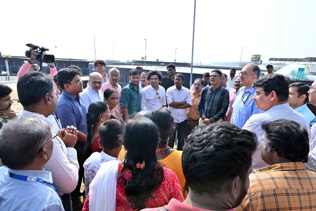 The secretary inspected the Indian white shrimp (Penaeus indicus) Genetic Improvement Programme facilities being implemented by ICAR–CIBA under the Pradhan Mantri Matsya Sampada Yojana (PMMSY). The programme aims to strengthen scientific shrimp breeding in the country through the development of genetically improved stocks of Indian white shrimp with a total cost of ₹25.04 crore. The secretary also reviewed the second DoF funded project on “New Age Shrimp System for Precise Use of Land, Water and Feed,” approved at a cost of ₹2.21 crore, aims to promote climate-smart and resource-efficient shrimp farming models. The Secretary also inspected the research facilities, including finfish, crustacean, ornamental fish, and crab hatchery units, as well as the feed mill.