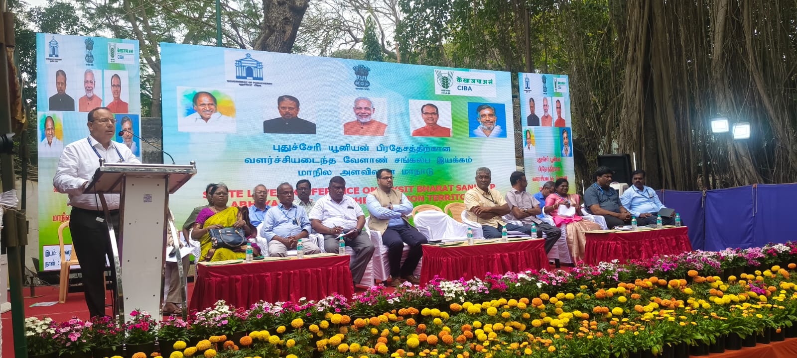 ICAR-CIBA in collaboration with Departments of Agriculture and Farmers Welfare, Krishi Vigyan Kendras, Animal Husbandry and Fisheries & Fishermen Welfare Government of Puducherry Union Territory conducted a State Level Conference on Viksit Krishi Sankalp Abhiyan at the Botanical Gardens, Puducherry, on 1st February 2026. The objective of the conference is to assess the current status of the agriculture, veterinary, dairy, and fisheries sectors in Puducherry UT and to formulate a state action plan cum strategic roadmap for their sustainable growth and development in alignment with the vision of Viksit Bharat @ 2047. The conference was well attended by more than 150 participants consisted of the farmers, officials of the development departments, scientists and academicians from agriculture and allied sectors, officials from State Departments, Krishi Vigyan Kendras, and other related developmental organizations.