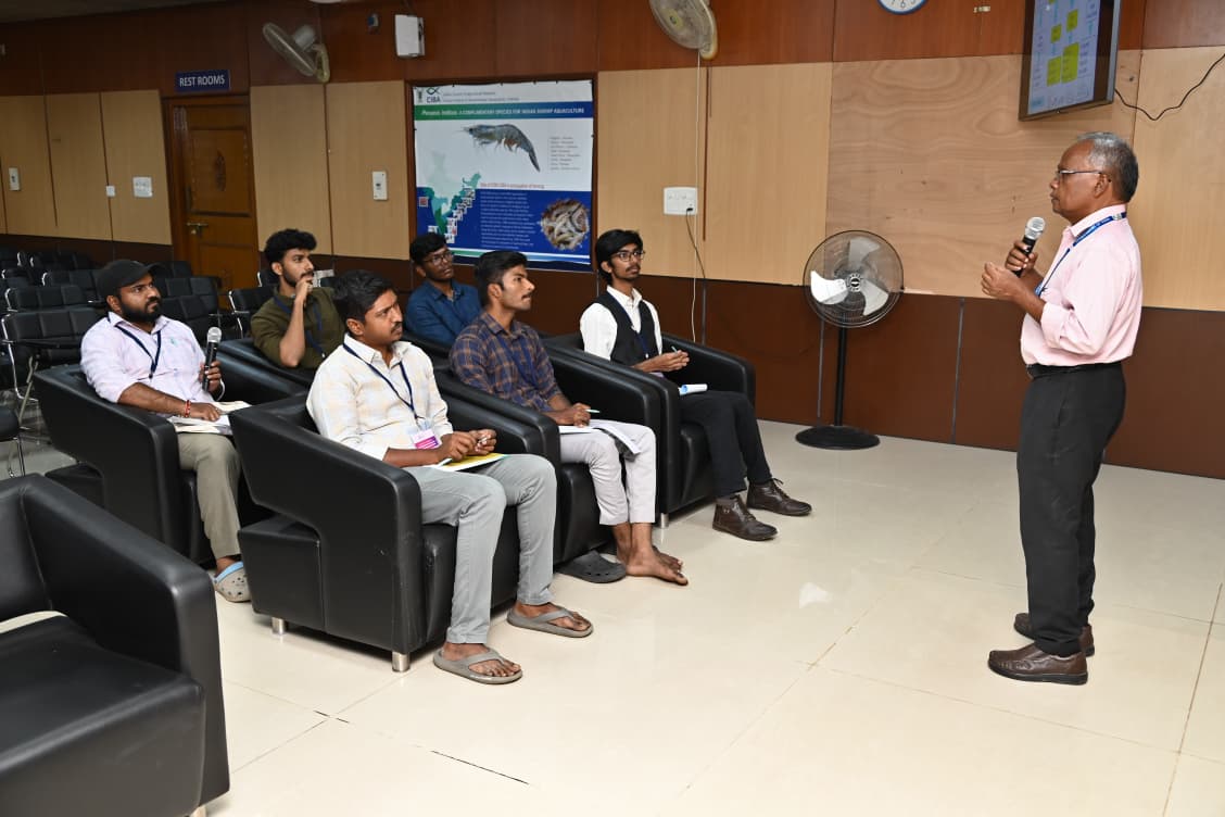 The training programme was coordinated by Dr. Dani Thomas, Scientist, and Dr. Sandeep K. P., Senior Scientist, of the Fish Culture Division, ICAR-CIBA. Dr. R. Jayakumar, Officer-in-Charge of the Muttukadu Experimental Station, were also present during the programme.