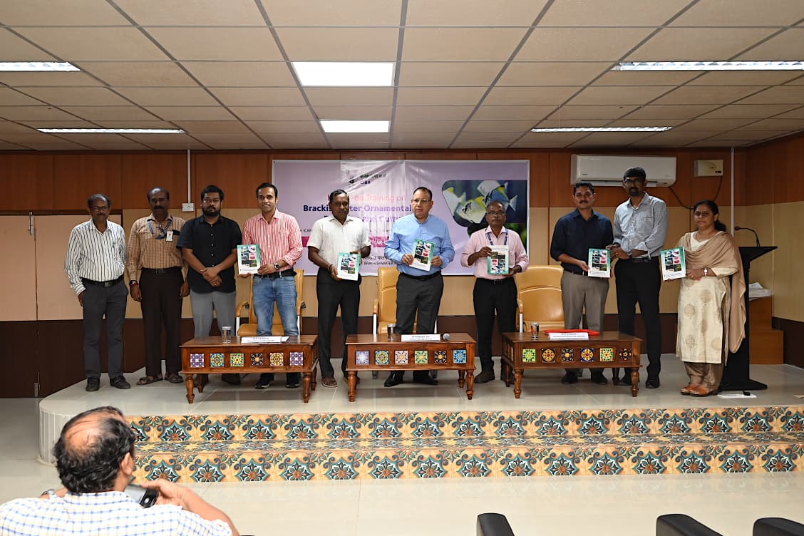 While inaugurating the training Dr. Kuldeep K. Lal, Director of ICAR-CIBA, highlighted the importance of brackishwater ornamental fishes and their potential. Dr. M. Kailasam, Head of the Fish Culture Division at ICAR-CIBA, emphasized the significance of such training programmes in promoting ornamental fisheries. He also released a comprehensive training manual which provides detailed technical guidance on broodstock management, breeding protocols, larval rearing techniques, hatchery practices, water quality management, feed, and health management.