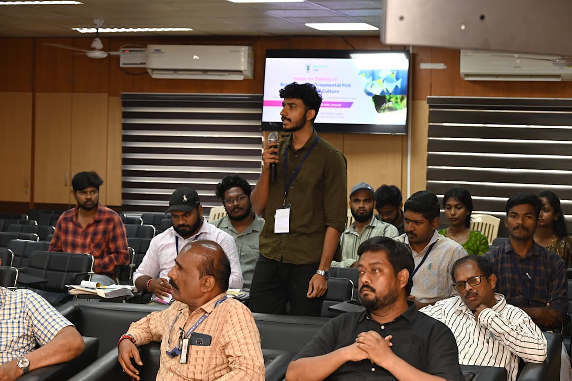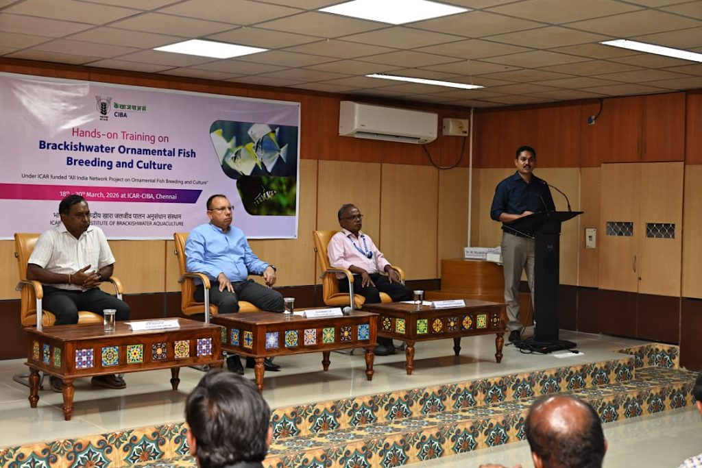 The ICAR–Central Institute of Brackishwater Aquaculture (ICAR-CIBA), Chennai, organized a three-day hands-on training programme on brackishwater ornamental fish breeding and culture from 18th to 20th March 2026 at its Muttukadu Experimental Station. The programme was conducted under the ICAR-funded “All India Network Project on Ornamental Fish Breeding and Culture.” Fifteen (15) participants, including researchers, students, farmers, and hobbyists, attended the training programme.